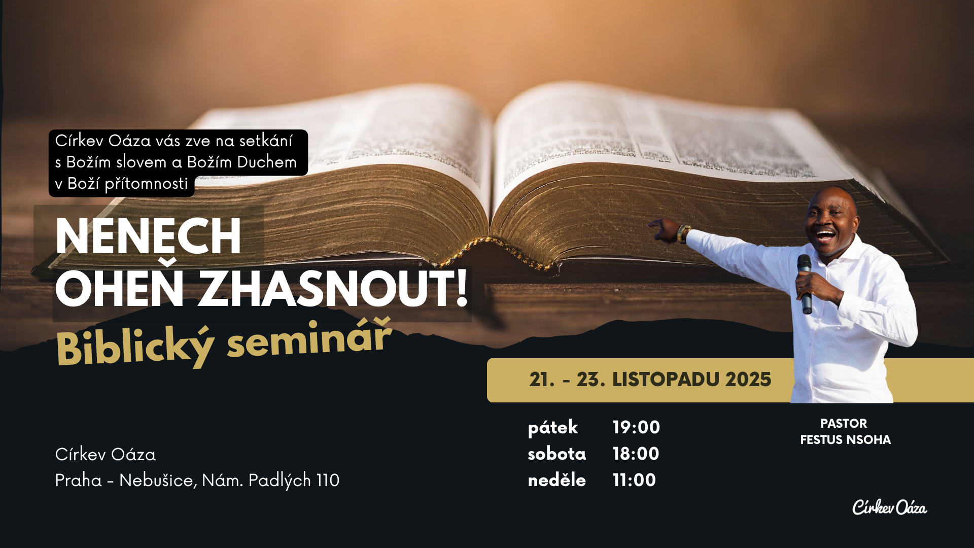 - 21. – 23. 11. Biblický seminář v Praze Nebušicích.